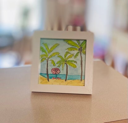 Keep a little bit of the beach in your office year round with this fun framed watercolor painting. 4x4 inches