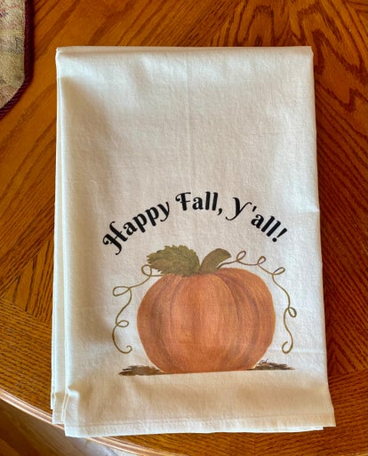 Say hello to Fall with a flour sack tea towel, 27x27 in. with original watercolor art. These extra large towels are soft and machine washable (cold water, delicate; air dry). Iron from reverse side.