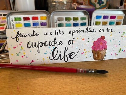 A colorful mini painting is just perfect for your desk or as a gift to brighten someone's day!