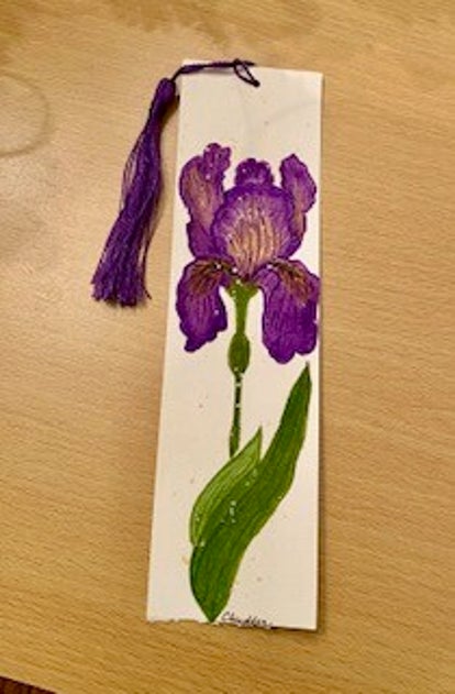 Bookmark w/purple iris, can be tasseled or untasseled