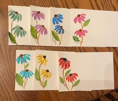 Set of single-ply notecards with multi-colored coneflowers, and matching envelopes
