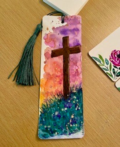 Bookmark with cross and floral arrangement
